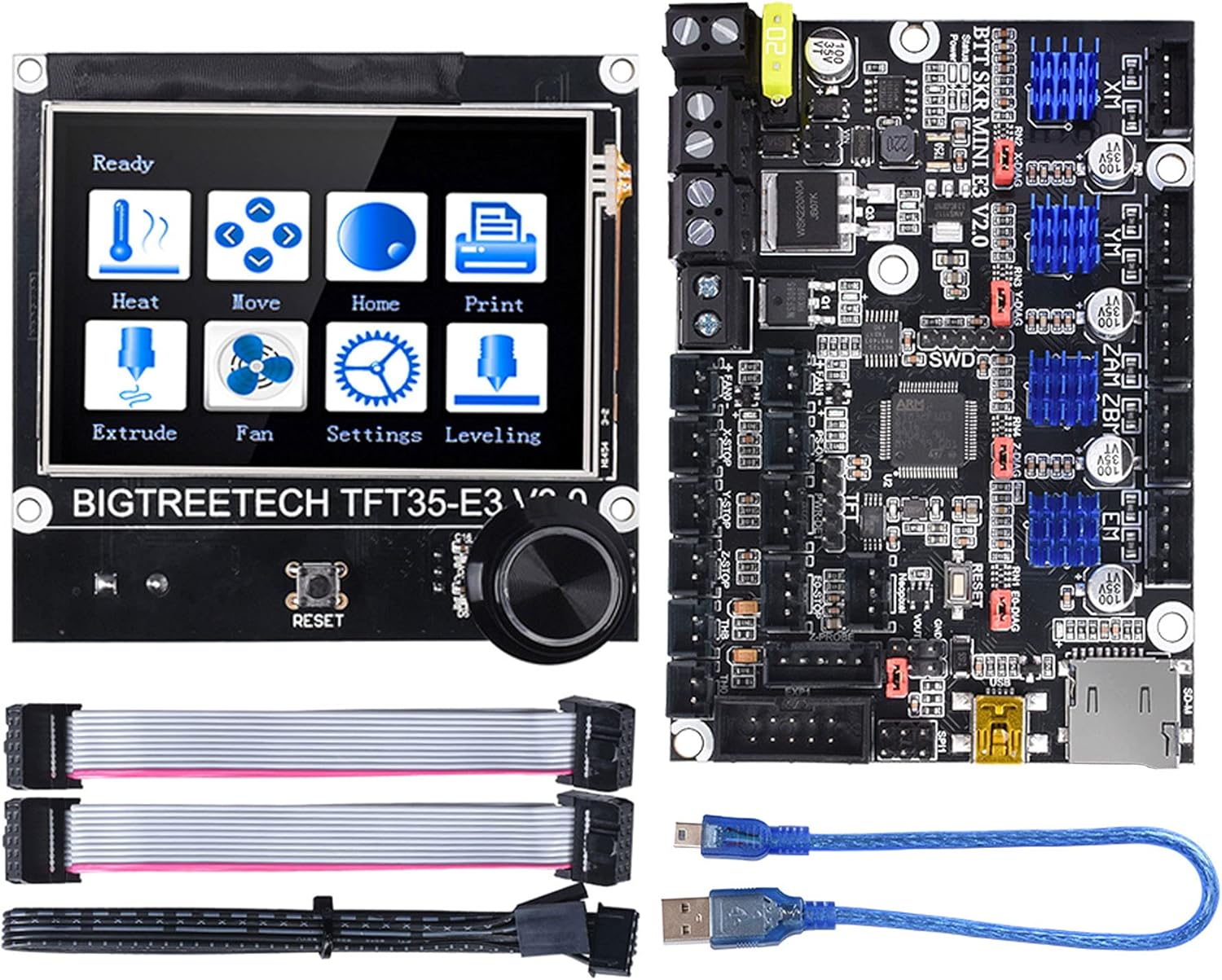 Revolutionize your Creality Ender 3 with the BIGTREETECH SKR Mini E3 V2.0 control board and TFT35 E3 V3.0 graphic display. This powerful, drop-in upgrade bundle delivers a dramatically quieter and more precise 3D printing experience. The 32-bit SKR Mini E3 V2.0 board features silent TMC2209 stepper drivers, eliminating the loud stepper motor whine for near-silent operation. It offers enhanced thermal safety protection, a dedicated BLTouch port for automatic bed leveling, and improved heat dissipation. Paired with the vibrant TFT35 E3 V3.0 touchscreen, you gain intuitive control through a colorful graphical interface or a classic Marlin mode, allowing easy adjustment of settings, file management, and real-time print monitoring directly from the display. This combo is the definitive performance upgrade for Ender 3, Ender 3 Pro, and Ender 3 V2 printers. Users benefit from smoother prints due to advanced stepper control, increased reliability, and a modernized user interface. It’s the perfect solution for hobbyists and enthusiasts looking to reduce noise, improve print quality, and add convenient features like filament runout detection and more flexible firmware options. Install this all-in-one kit to unlock your printer’s full potential with professional-grade control and silent operation.